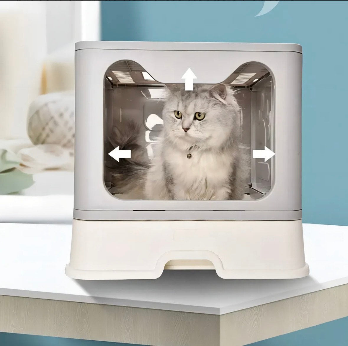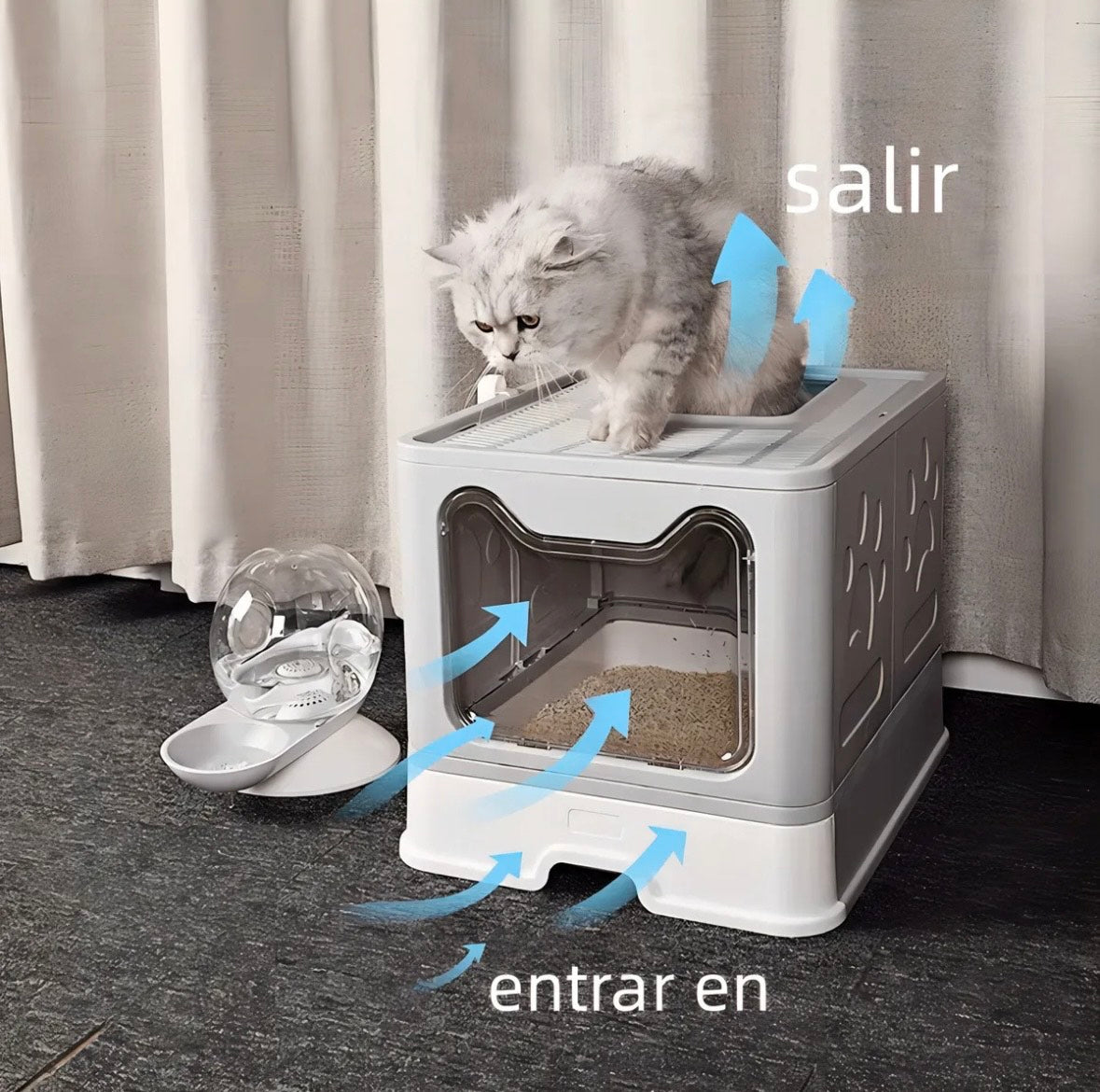 Este arenero tiene un diseño especial de dos vías de entrada y salida. La puerta de entrada superior permite al gato entrar y salir, mientras que la puerta de entrada solo permite la entrada. Este diseño impide que la arena se derrame y evita el acceso de otros animales.
